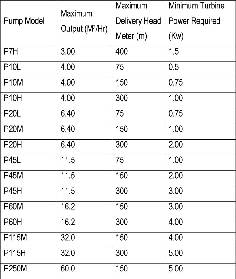 PUMP MODELS APPLICABLE WITH HIGH HEAD TURBINES
